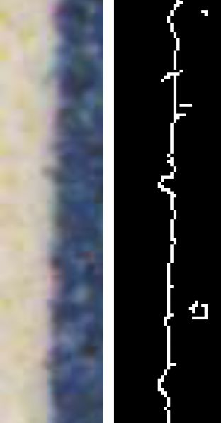 The measured path is obtained by tracing the contour from the top to the bottom of the line.